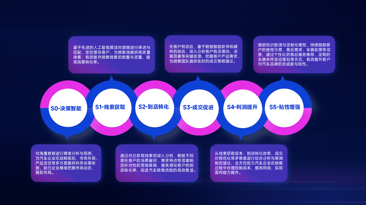 通过拓宽潜在客户来源、、、优化线索分配并提高到店转化率,,,以增强销售效率。。。同时,,,利用线索数据不断优化分析模型,,有效提升转化率,,扩大营销影响力。。。。